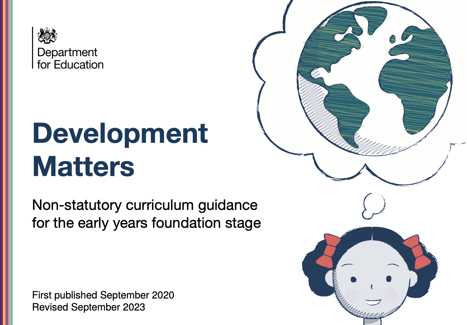 Development Matters is a non-statutory guidance document that supports the Early Years Foundation Stage (EYFS). It helps practitioners understand how children learn and develop from birth to five, and guides us in planning experiences that support each child’s progress.